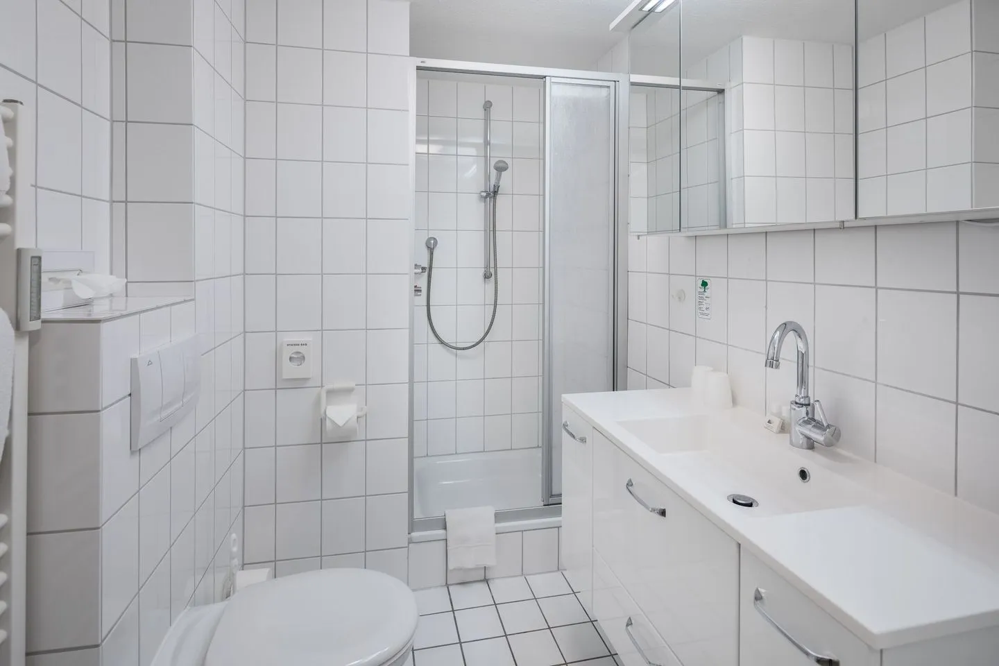 Die Wohnung verfügt über einen Wohn- und Schlafbereich mit einem ausklappbaren Schrankbett. Hier kann tagsüber das Bett hochgeklappt werden, so dass man genug Platz zum verweilen hat. Die Küche ist ausgestattet mit einem 2-Platten-Herd, Kühlschrank, Toaster, Wasserkocher und einer Filterkaffeemaschine.