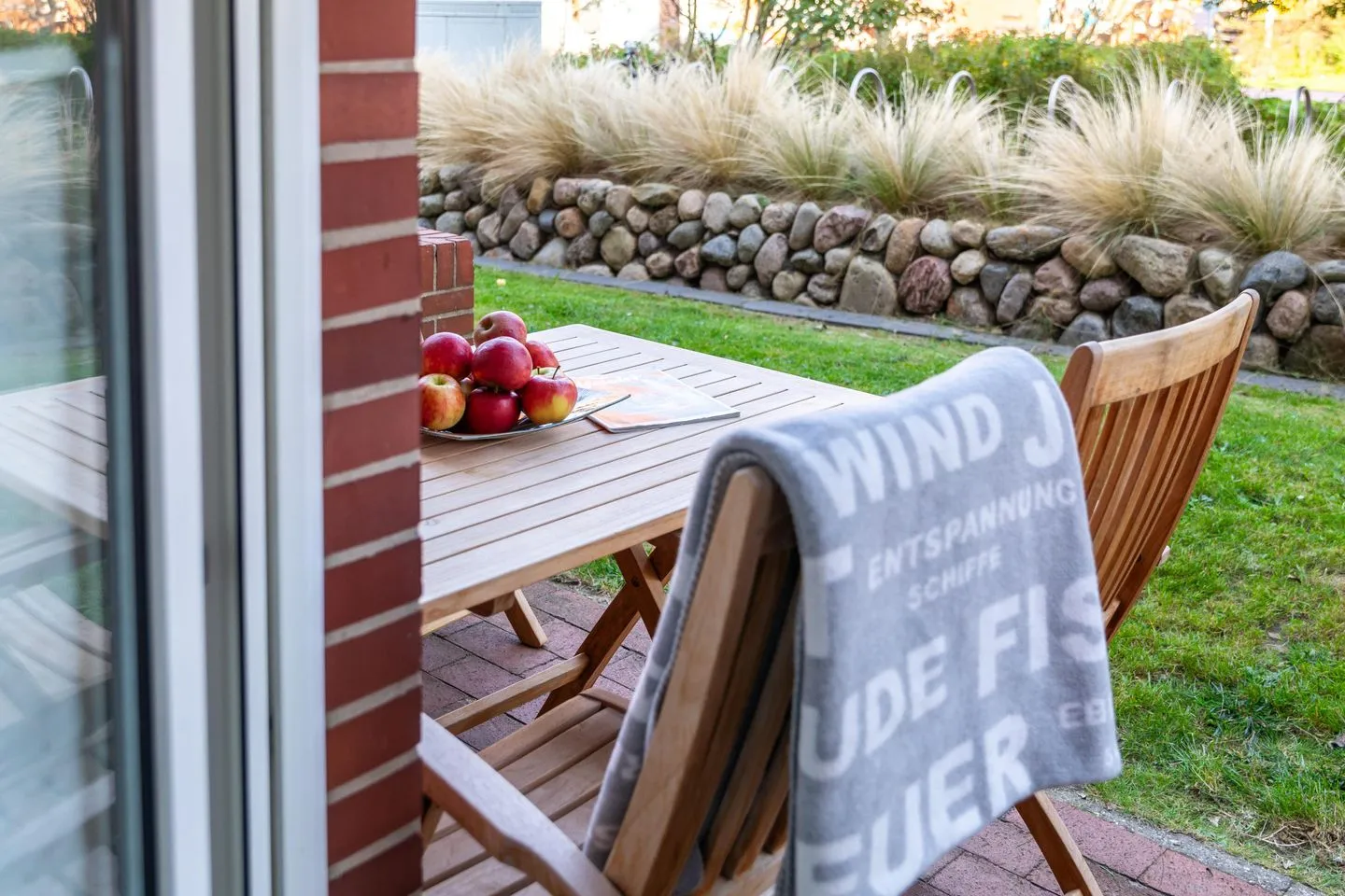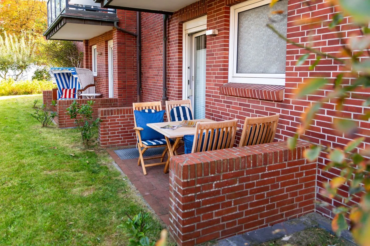 Ein besonderes Highlight des Appartements sind die 3 Terrassen( zwei Richtung Kurplatz, eine Richtung Süden), die zum Entspannen und Verweilen einladen. Hier können Sie Ihre Tage in einem der bereitgestellten Strandkörbe genießen oder die Gartenmöbel nutzen, um eine Tasse Kaffee oder ein Glas Wein in der frischen Seeluft zu genießen.