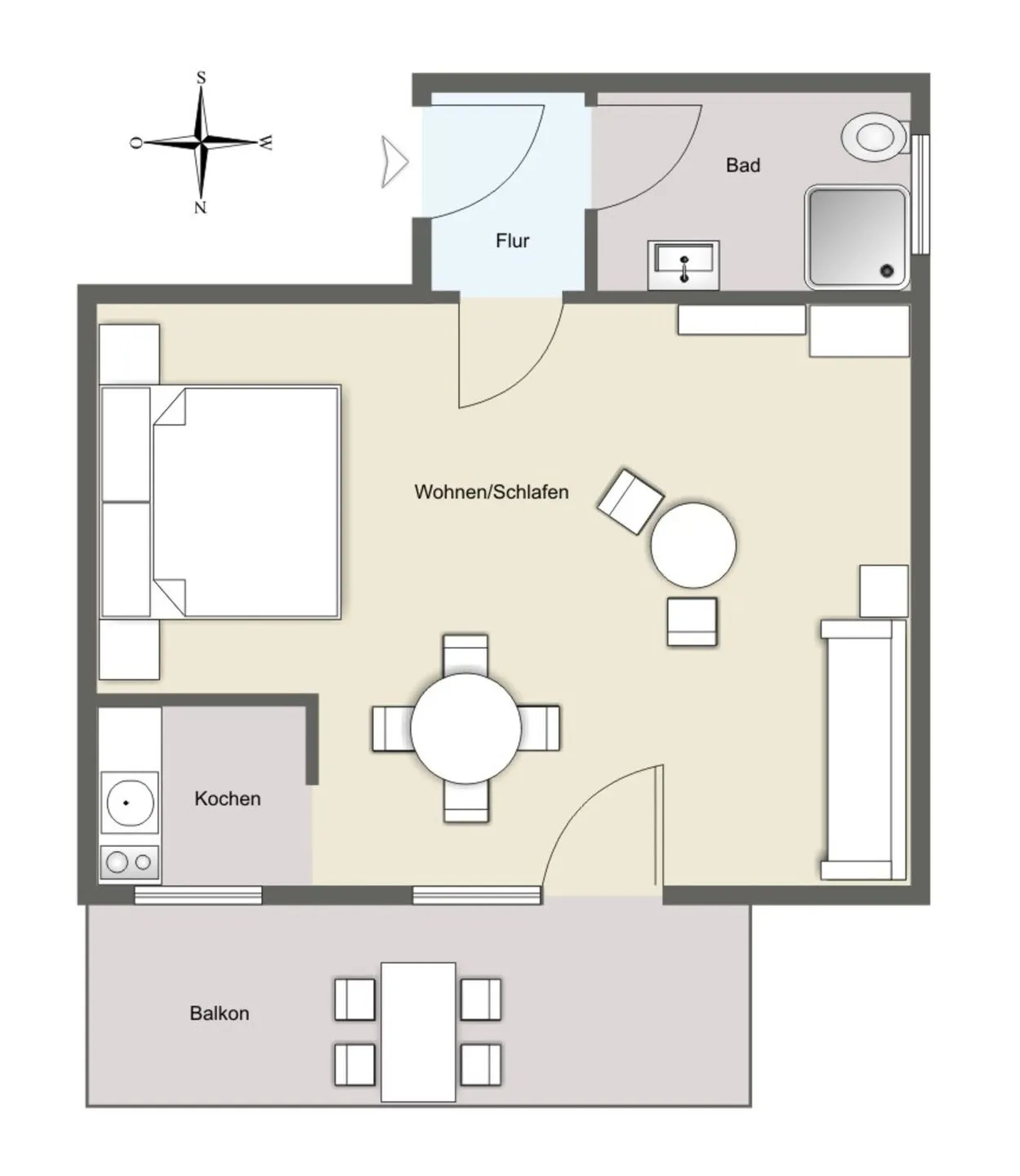 Willkommen im 1-Zimmer Appartement „Uns Stuuv“ im Appartement Haus Bracht direkt am Kurplatz!