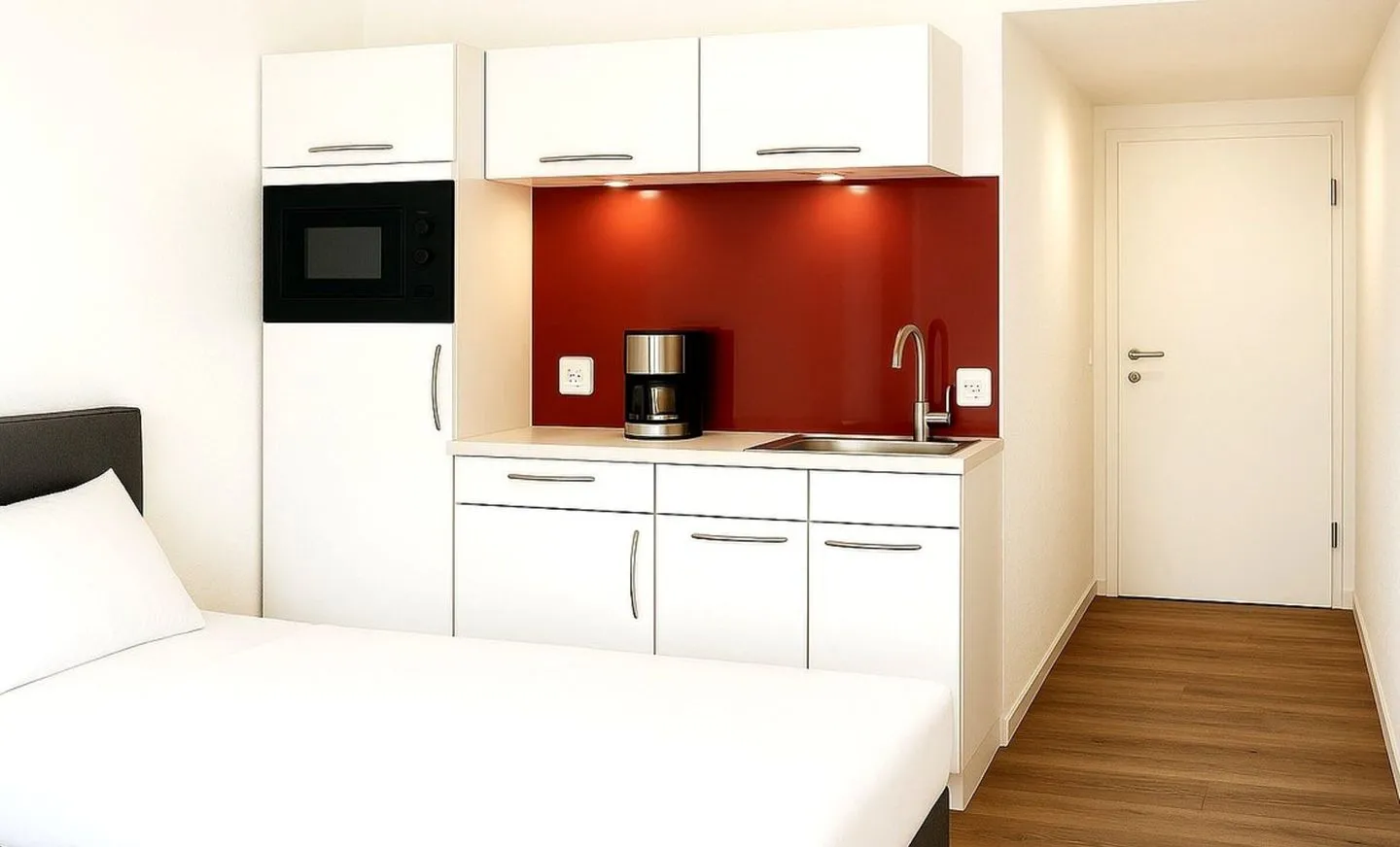 Das Appartement befindet sich im 1. Stock des Appartement Haus Bracht und bietet Ihnen einen herrlichen Blick auf den Garten, der zu entspannenden Stunden im Freien einlädt. Der offene Wohn/Schlafbereich, verfügt über eine voll ausgestattete Küche mit 2-Platten-Herd, Spülmaschine, Mikrowelle, Kühlschrank inklusive Gefrierfach und Kaffeemaschine . Hier können Sie Ihre Lieblingsgerichte zubereiten und sich durch die regionale Küche inspirieren lassen. Als Schlafmöglichkeit steht Ihnen ein Boxspringbett zur Verfügung.