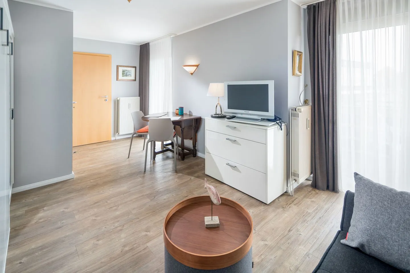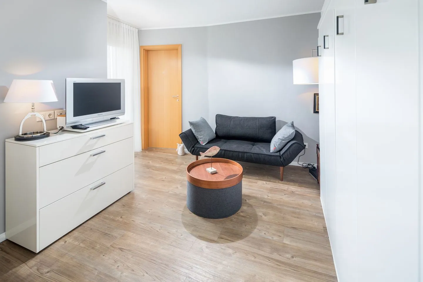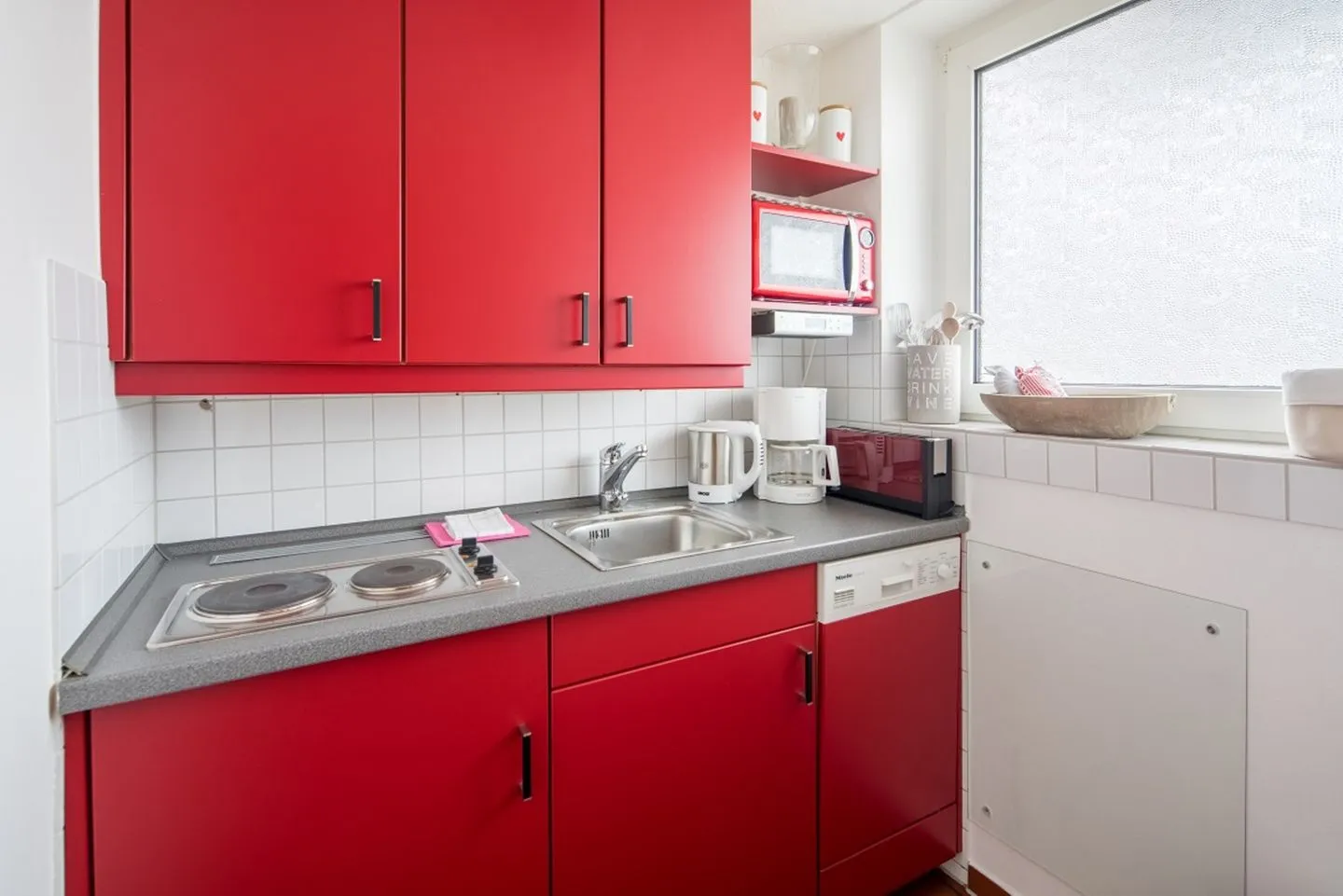 Die Dünendiva befindet sich im 2. Stock und ist bequem mit dem Aufzug zu erreichen. Die liebevoll eingerichtete Kochnische ist mit allem ausgestattet, was Sie für die Zubereitung Ihrer Lieblingsgerichte benötigen: ein 2-Platten-Herd, eine Mikrowelle, Kühlschrank mit Gefrierfach, Spülmaschine, Toaster, Wasserkocher und Kaffeemaschine stehen Ihnen zur Verfügung. Genießen Sie gemeinsame Mahlzeiten am Esstisch, während das gemütliche Sofa zu entspannenden Stunden einlädt. Als Schlafmöglichkeit steht Ihnen ein Schrankbett zur Verfügung.