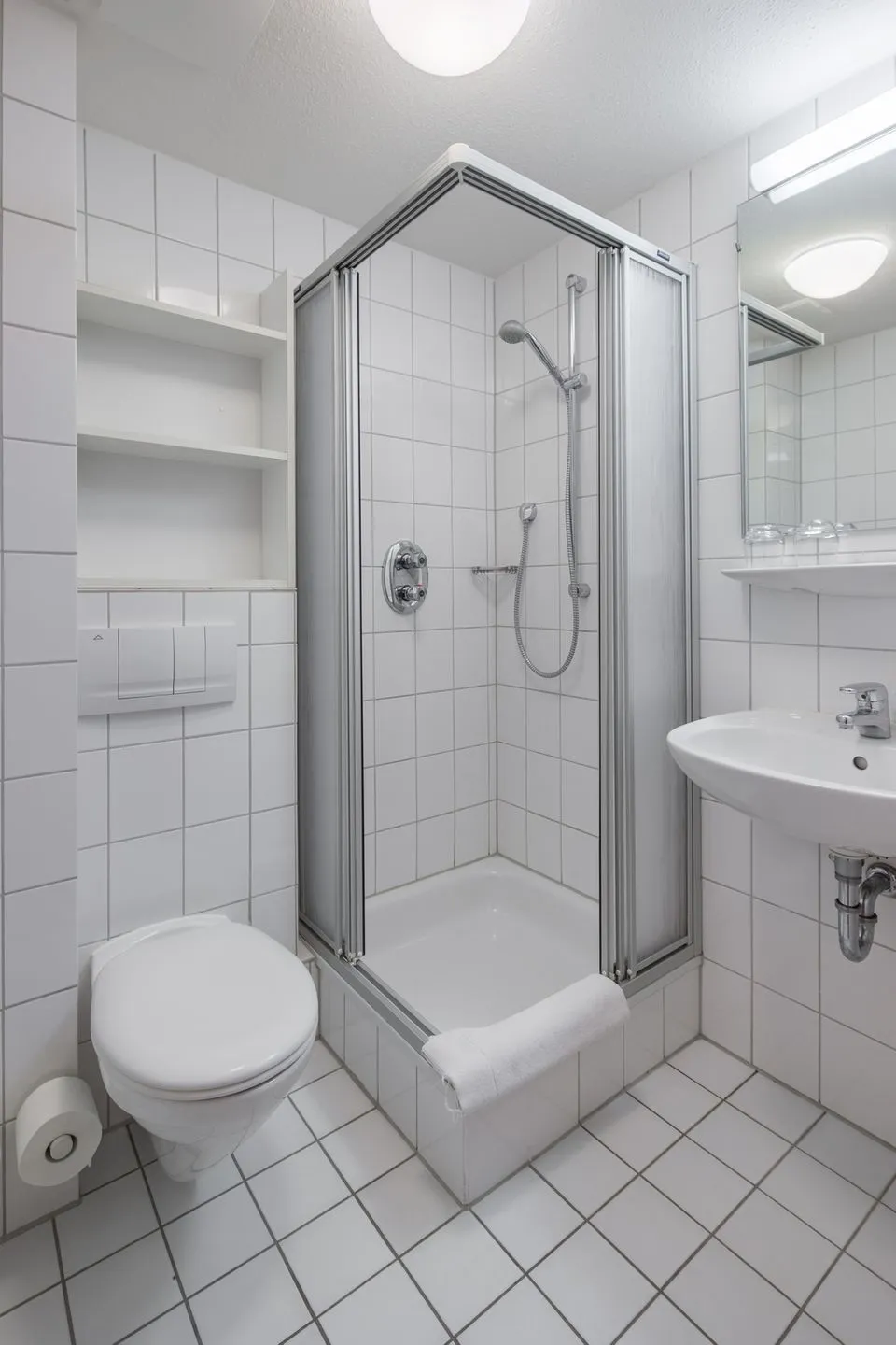 Das Appartement verfügt über ein Schrankbett und ein Schlafsofa. Die Kochnische ist mit einem 2-Platten-Herd, Kühlschrank, Toaster und alle notwendigen Küchenutensilien ausgestattet. Der Esstisch lädt zu geselligen Mahlzeiten ein.