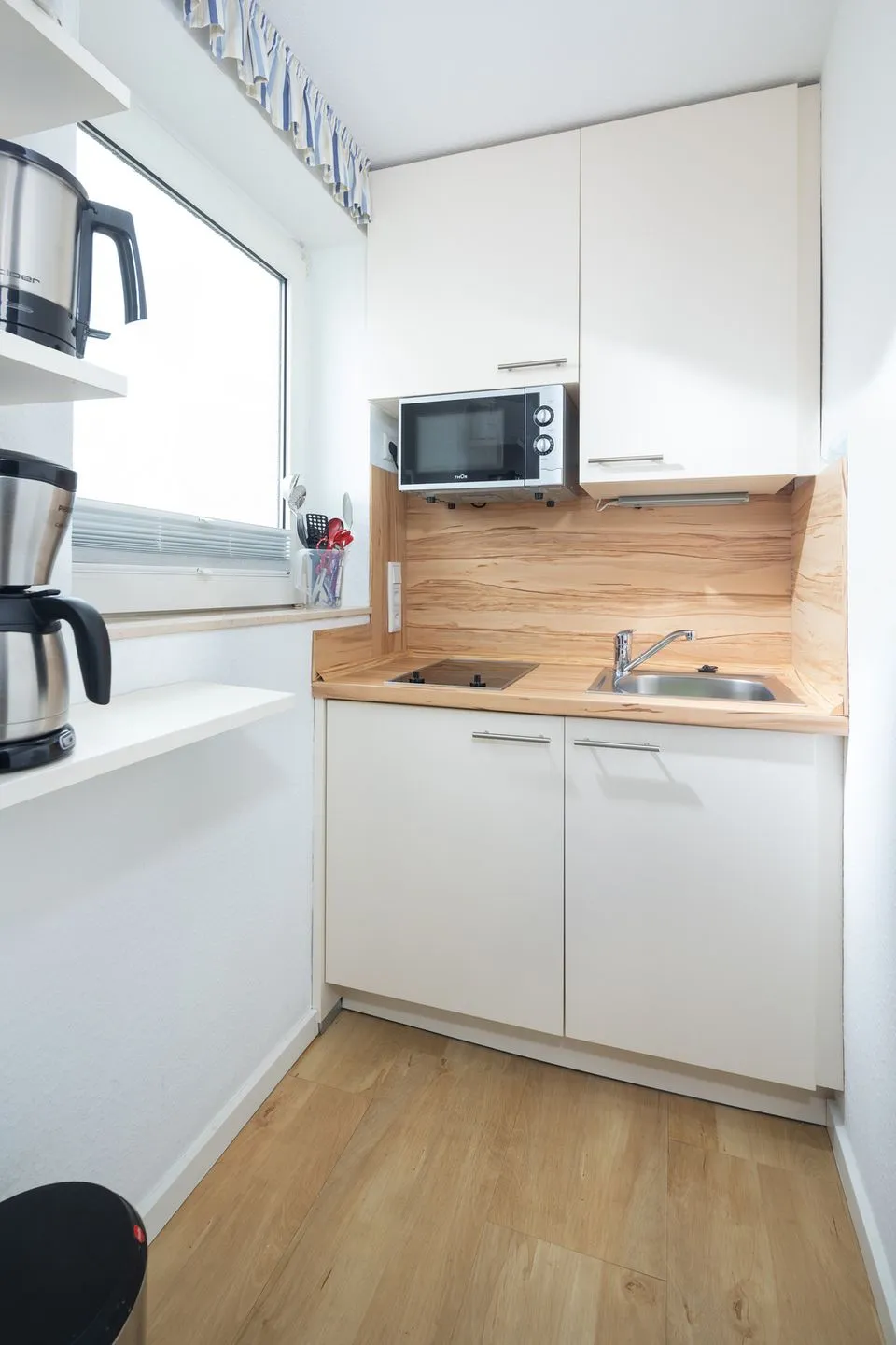 Die Unterkunft selbst ist modern und allergikerfreundlich eingerichtet und verfügt über alles, was Sie für einen entspannten Aufenthalt benötigen. Auf 35 m² bietet der "Lieblingsplatz" ein Wohn- und Schlafzimmer mit einem gemütlichen Schlafsofa und einem Doppelbett. Eine voll ausgestattete Kochnische mit Herd, Kühlschrank, Mikrowelle, Wasserkocher, Kaffeemaschine und Geschirr sorgt dafür, dass Sie sich selbst kulinarisch verwöhnen können.