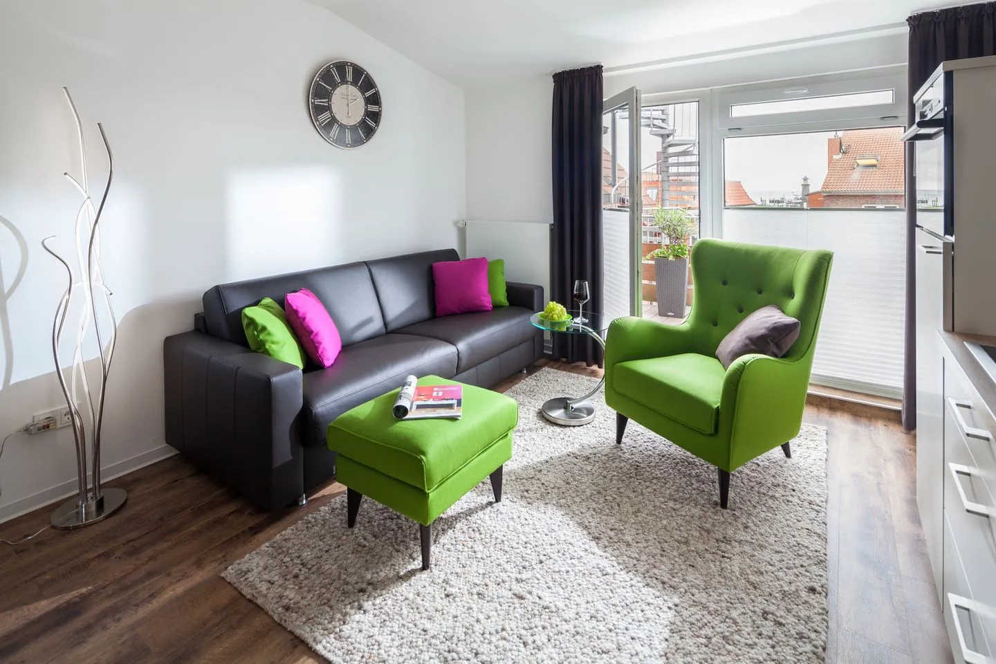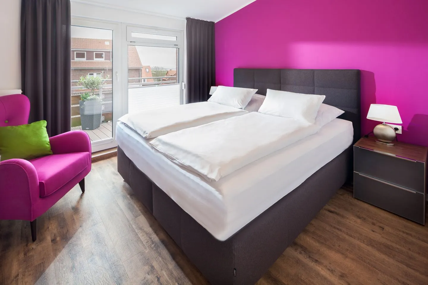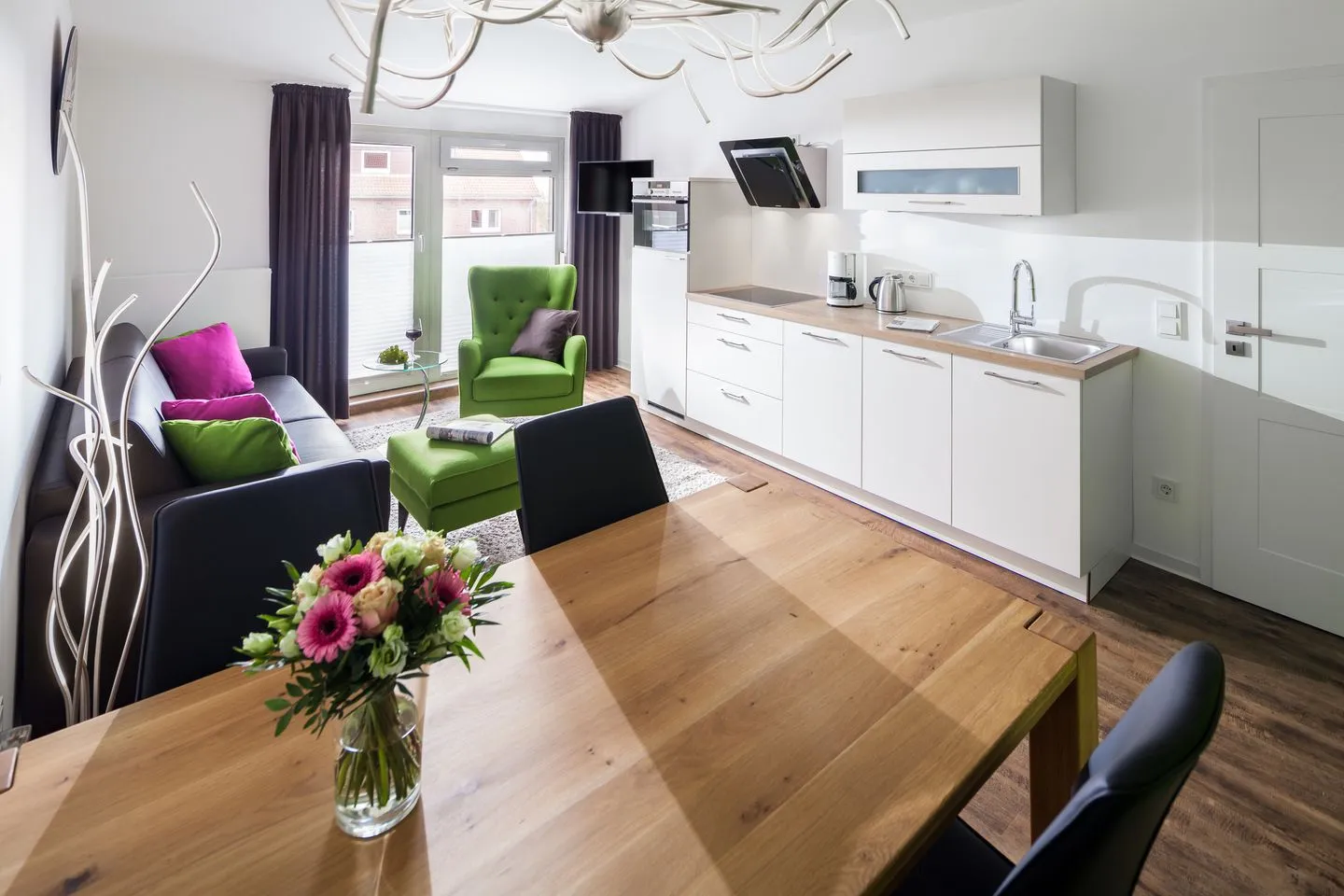 Die Unterkunft bietet Ihnen den idealen Rückzugsort für einen traumhaften Urlaub an der Nordsee. In diesem modernen Appartement mit einer Größe von 45 m² finden bis zu vier Personen ausreichend Platz zum Entspannen und Wohlfühlen. Die Suite verfügt über ein gemütliches Schlafzimmer mit Boxspringbett sowie eine offene Wohnküche in der sich das Schlafsofa mit intergrierter Matratze befindet. Die liebevoll gestalteten Räume sind allergikergeeignet und das Nichtraucher-Ambiente sorgt für ein angenehmes Raumklima.