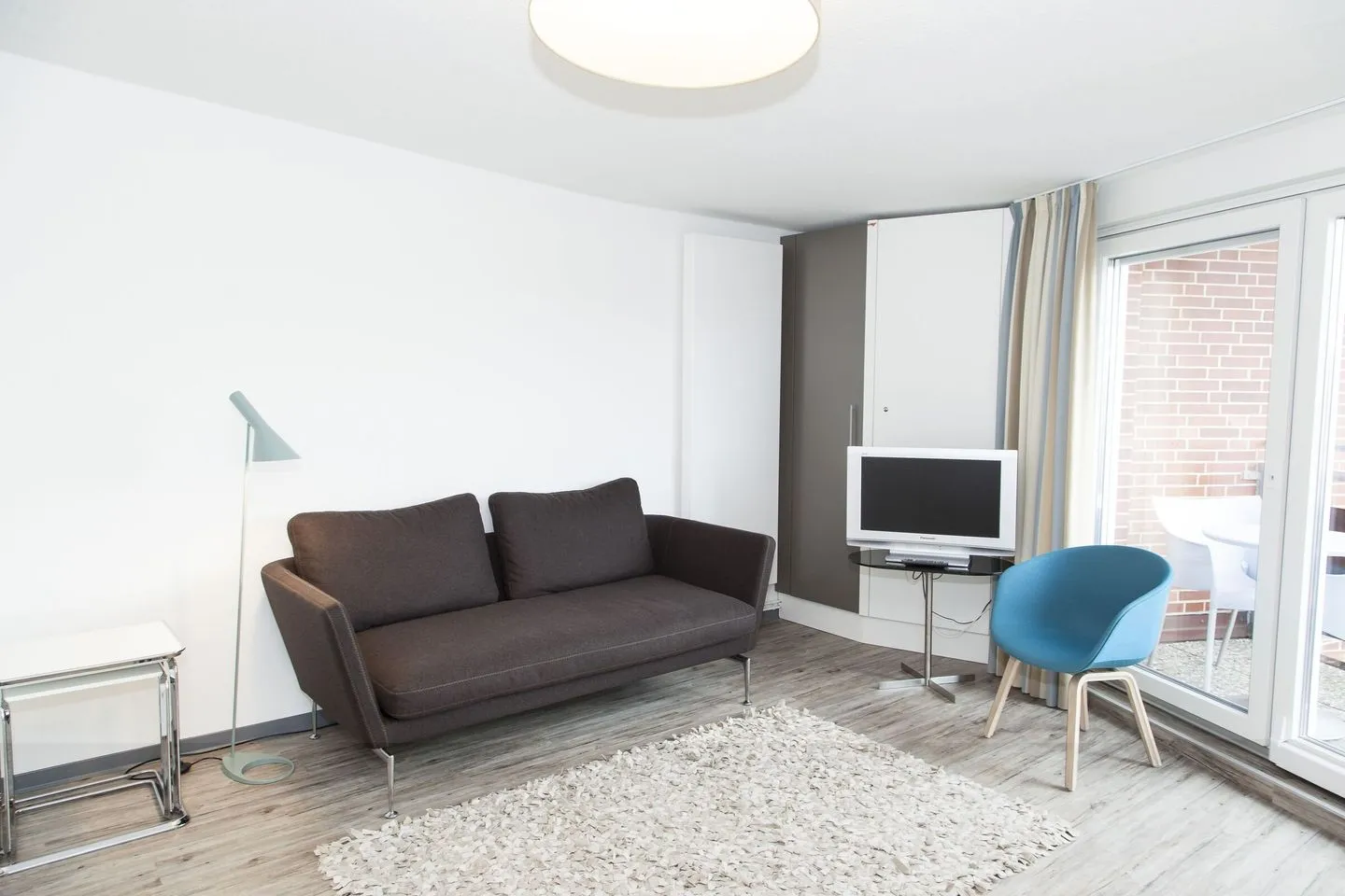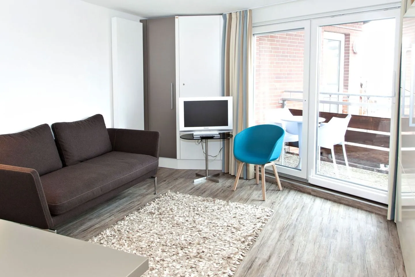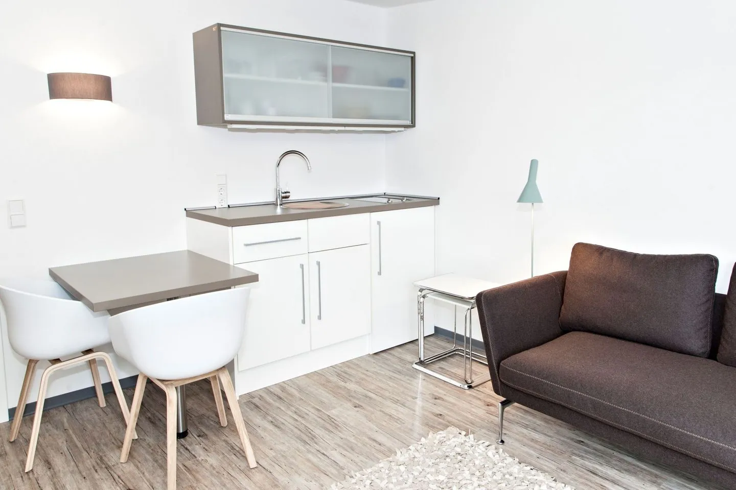 Mit einer Größe von 26 m² bietet die Kleine Wolke Platz für bis zu zwei Personen. Die Wohnung befindet sich im 3. Stock und ist bequem mit dem Aufzug erreichbar. Es erwartet Sie eine offene Küche, die mit allem ausgestattet ist, was Sie für Ihren Aufenthalt benötigen. Vom Kühlschrank über einen 2-Platten-Herd bis hin zur Kaffeemaschine und Küchenutensilien – hier bleiben keine Wünsche offen. Der Essbereich und die Sofaecke laden dazu ein, gemütliche Stunden gemeinsam zu verbringen.