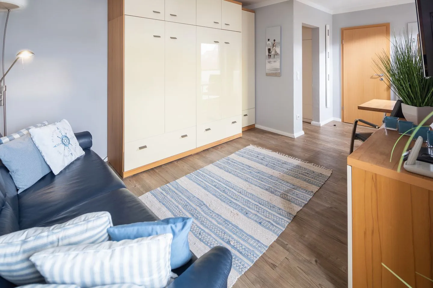 Ein weiteres Highlight der Wohnung sind die 2 Balkone, auf dem Sie bei einem Glas Wein den Blick über den Kurplatz und zum Hafen schweifen lassen können. Der Wohnbereich ist mit einem Fernseher ausgestattet und bietet Ihnen auch WLAN, sodass Sie jederzeit mit der Außenwelt verbunden bleiben können.