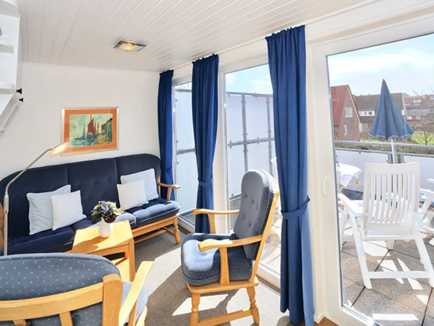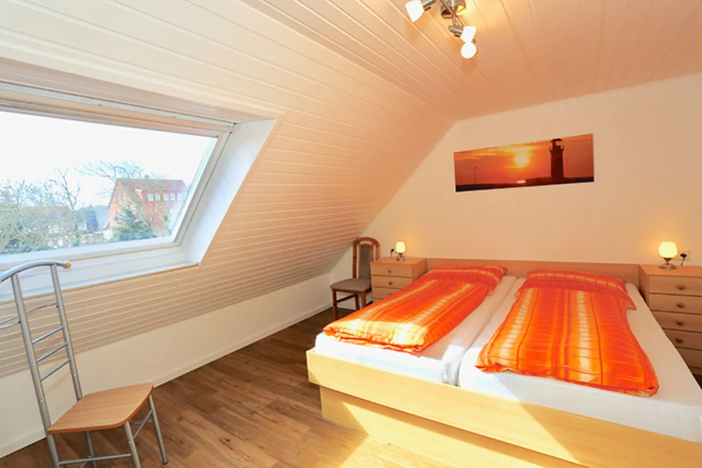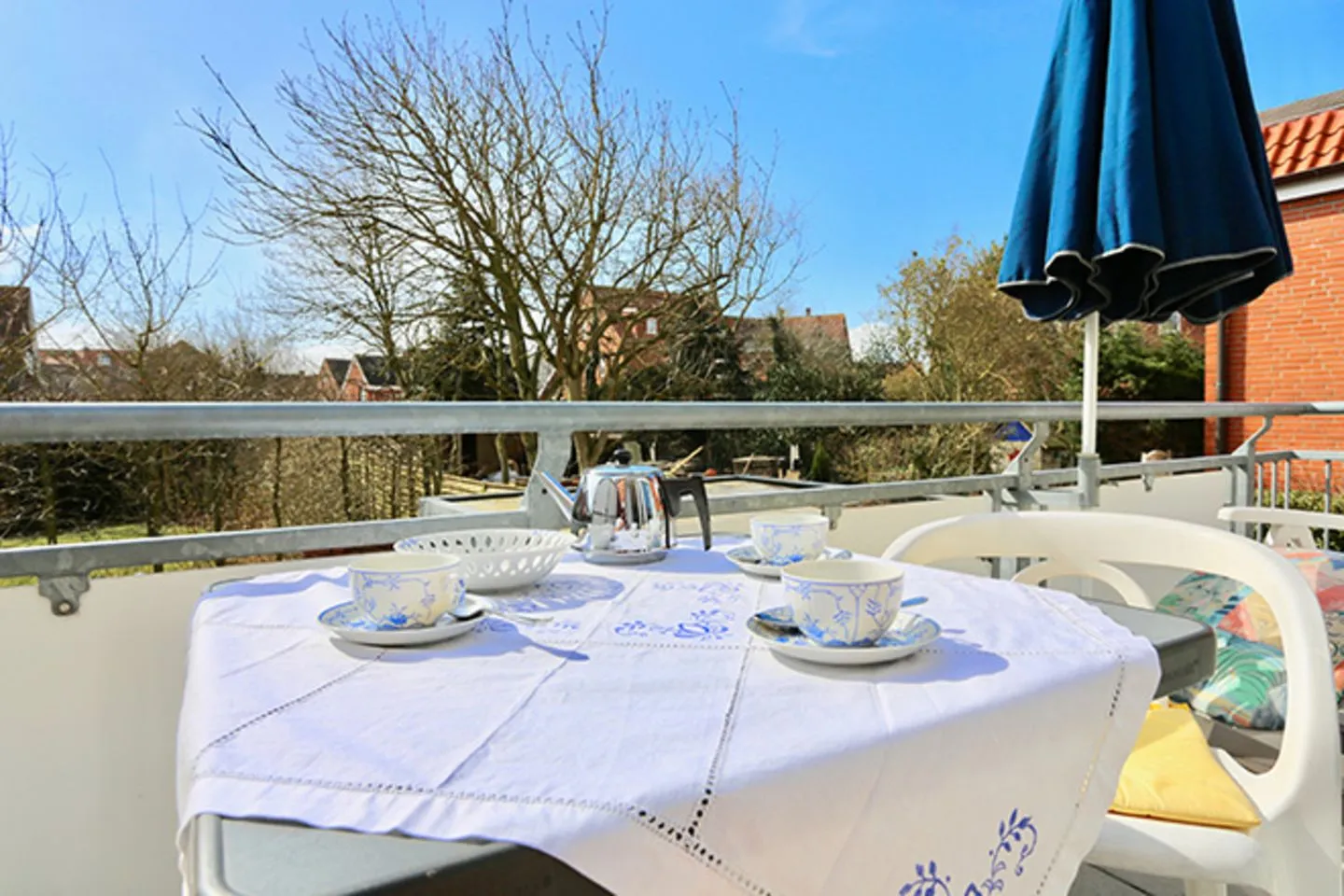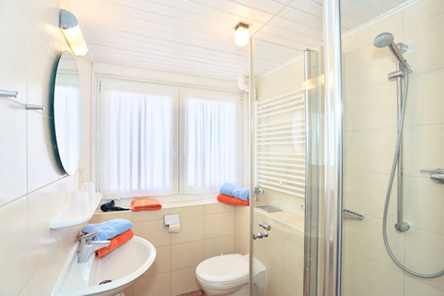 Der Wohnbereich dieser Wohnung ist größer, als es die 45 qm vermuten lassen. Denn die Flächen unter den Dachschrägen zählen nicht mit, sorgen aber zusätzlich für Raum – und für Behaglichkeit. Auch diese Wohnung ist sehr zweckmäßig gegliedert. Der gemütliche Wohnbereich und die große Wohnküche mit Essraum sind hier getrennt. Beide sind komplett ausgestattet mit Kabelfernsehen/Radio (auch gute Bücher fehlen nicht) bzw. mit allen wichtigen Küchen-Accessoires. In der Küche besteht eine weitere Schlafmöglichkeit, hierfür steht eine Klappcouch zur Verfügung. Das Bad verfügt über Dusche und WC. Diese Wohnung ist bei unseren Gästen besonders wegen ihrer 'Wohlfühl-Atmosphäre' und des schönen Blickes ins Grüne und über die Dächer der Ortschaft beliebt. Hinter den großen Fensterflächen liegt der Balkon Richtung Süden, der nicht nur besonders großzügig ausgelegt ist, sondern durch seine quadratische Grundfläche auch sehr vielseitig genutzt werden kann.