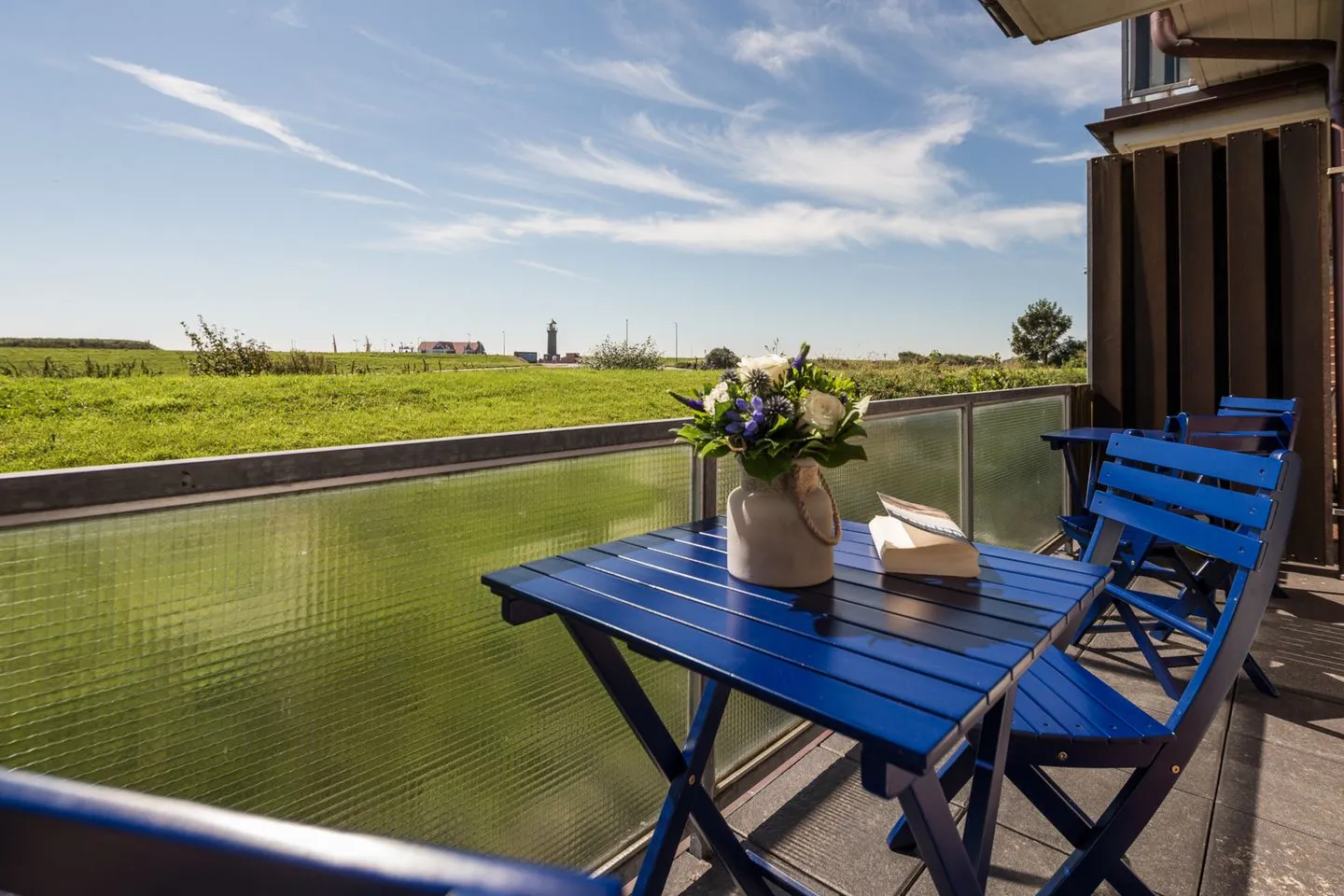 Im lichtdurchfluteten Souterrain der Wohnung Deichknutt-Watt befinden sich ein Schlafzimmer mit bodentiefen Fenstern und Zugang zur Südterrasse und ein Badezimmer.