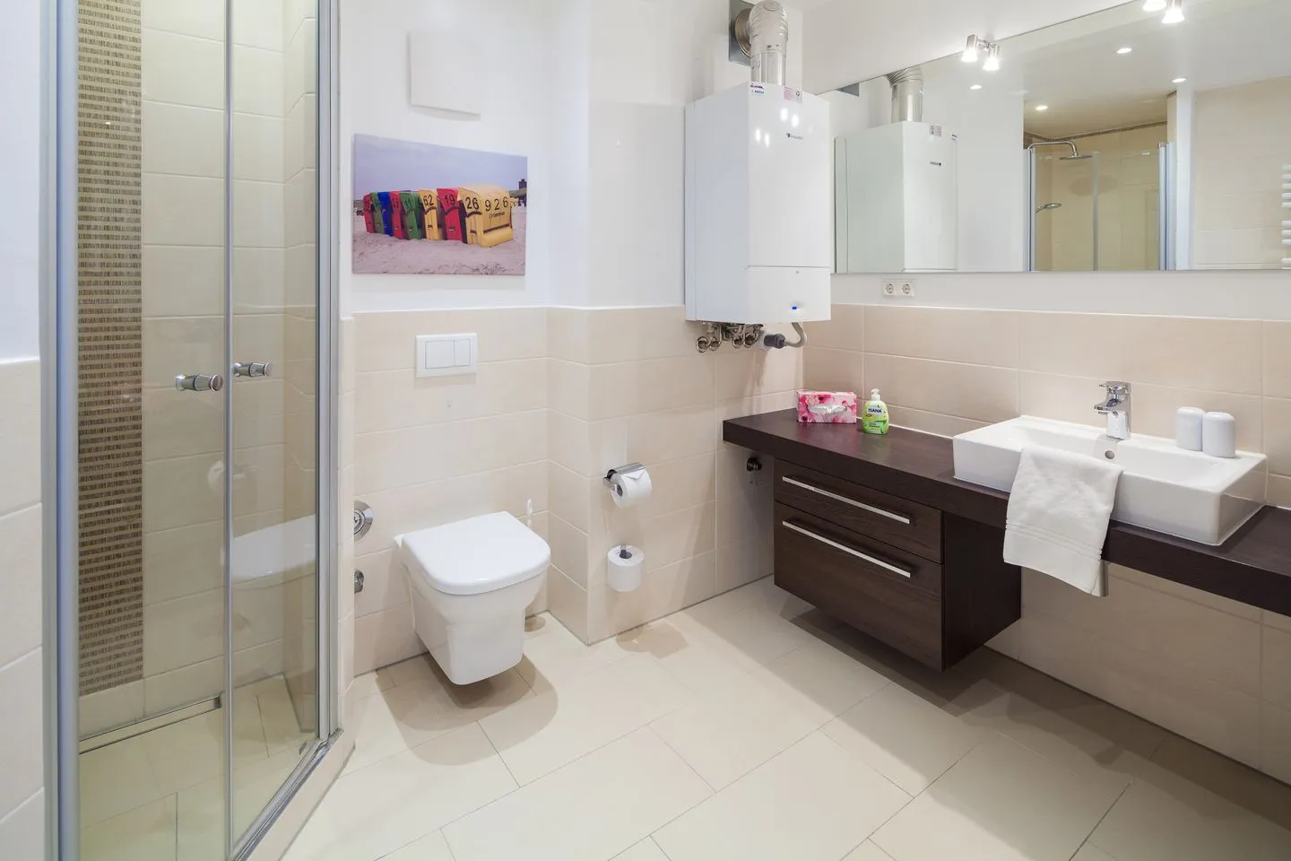 Eine Waschmaschine und ein Trockner befinden sich im Abstellraum.