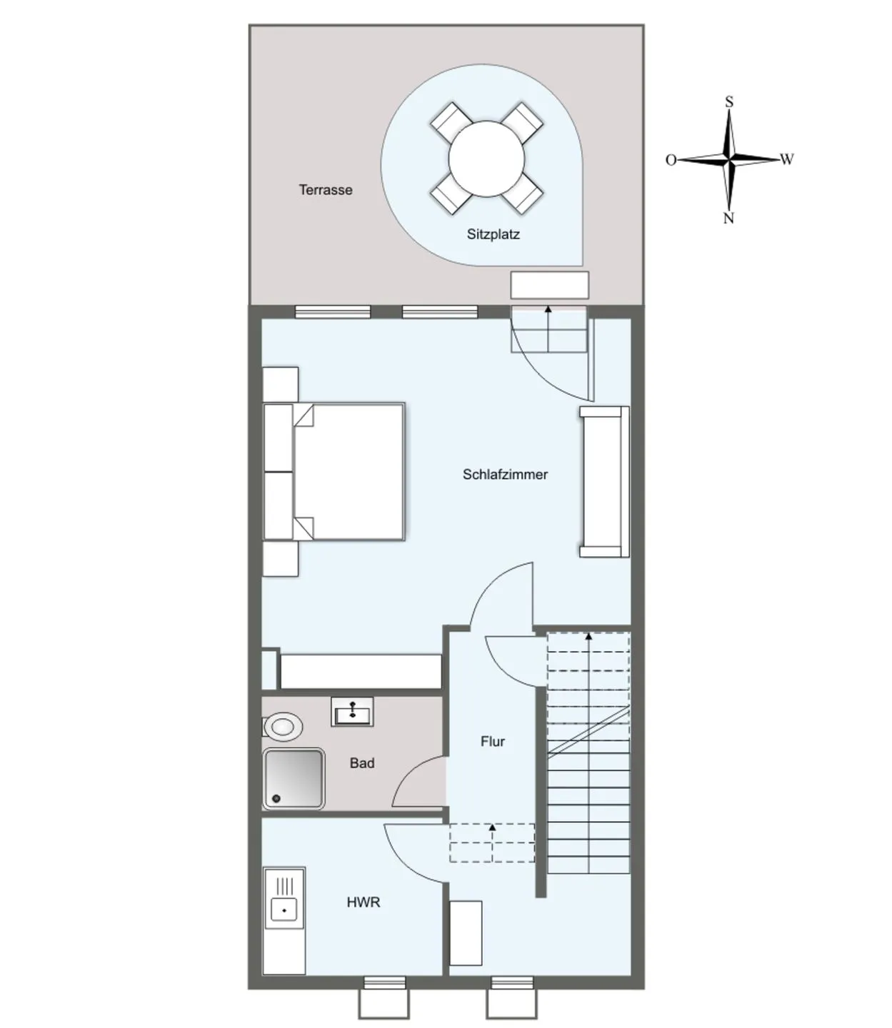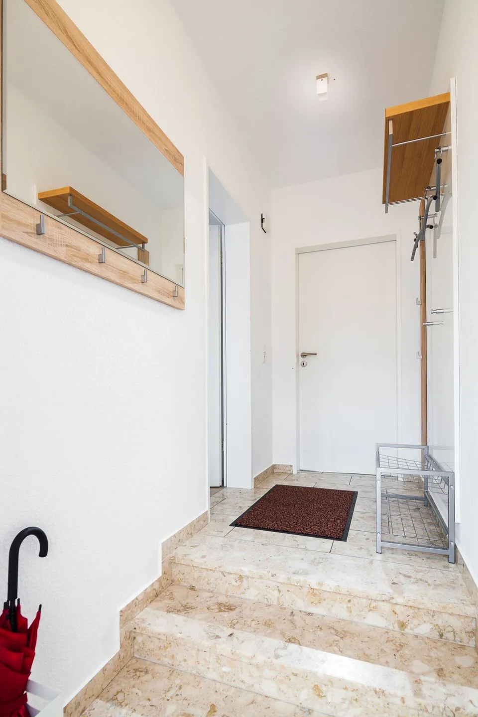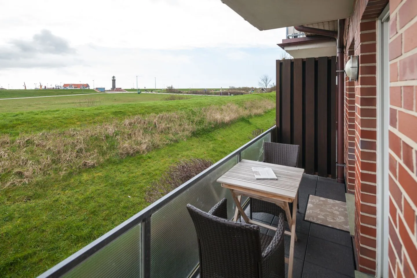 Das Appartement besticht durch das helle Wohnzimmer, das über einen gemütlichen Essbereich mit moderner Einbauküche und Blick Richtung Leuchtturm verfügt. Der zum Süden ausgerichtete Balkon lädt zum Sonnenbaden ein. Das angrenzende Gästezimmer zeigt nach Norden. Über eine Treppe gelangen Sie in den Souterrainbereich, mit einem Badezimmer und einem Schlafzimmer. Eine Flügeltür führt unmittelbar auf die geschützte Südterrasse, die von einem Friesenwall umgeben ist.