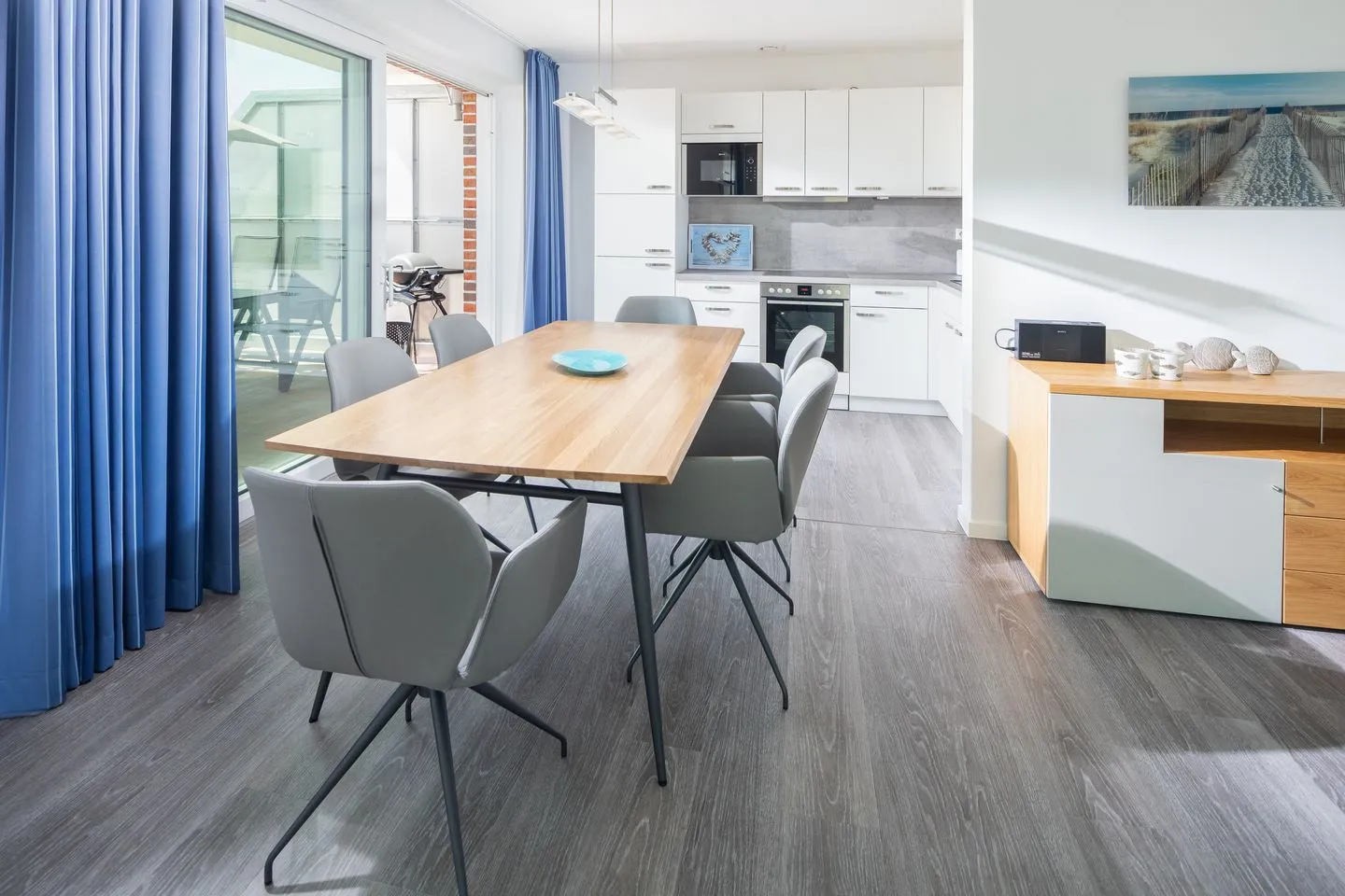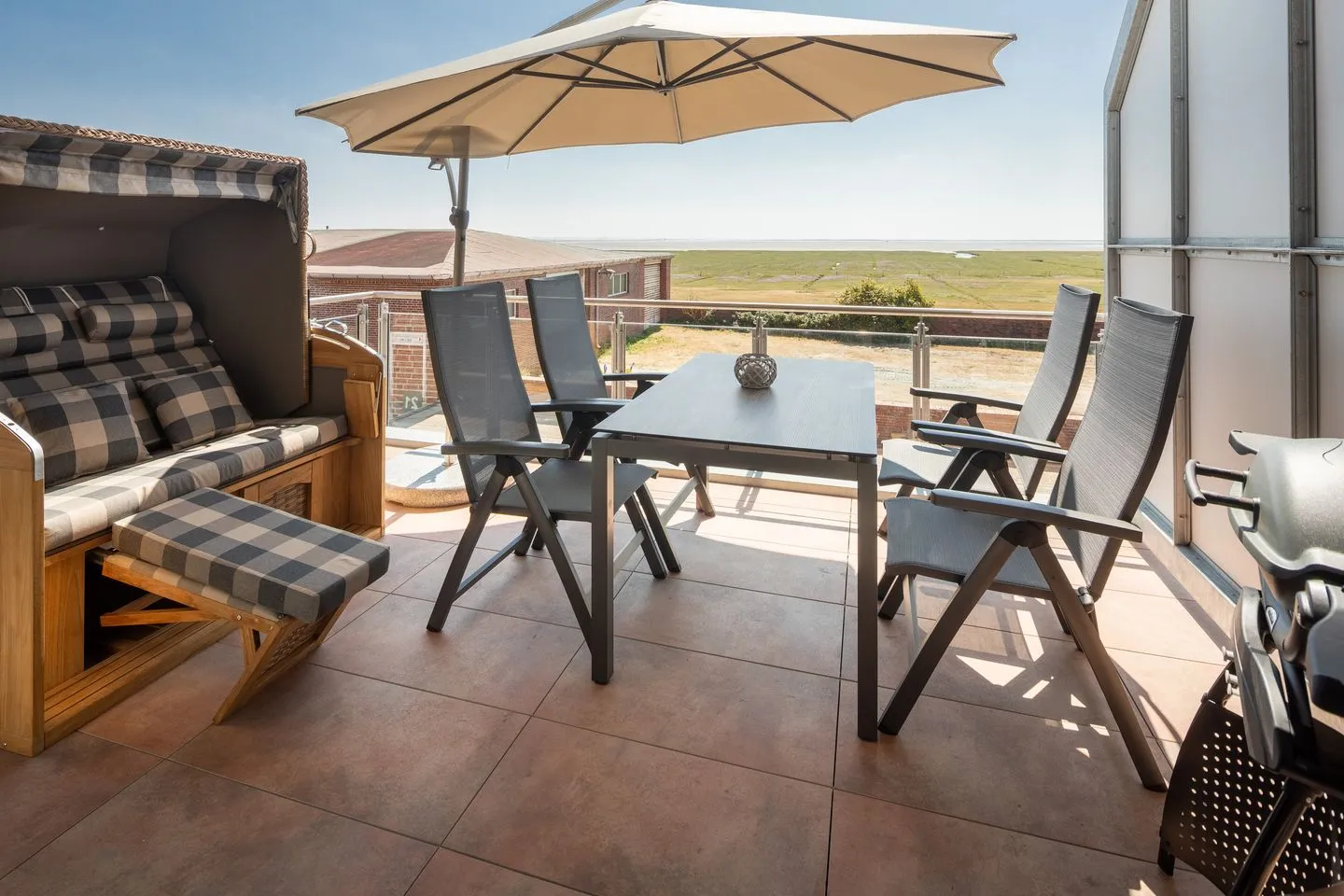 In dieser Anlage bieten wir Ihnen eine der exklusivsten Wohnungen mit Blick Richtung Watt an. Im ersten Stock des Hauses befindet sich diese moderne Ferienwohnung, die durch Eleganz und Komfort besticht. Diese niveauvolle Immobilie ist mit modernster Technologie und Einrichtung und ermöglicht die Unterbringung von bis zu 4 Personen. 2 Schlafzimmer mit Doppelbetten, ein Wohnzimmer mit einer modernen Küchenzeile und modernen Geräten, ein Duschbad und ein nach Süden ausgerichteter Balkon mit Strandkorb gehören zur gehobenen Ausstattung dieser Ferienwohnung, die die höchsten Ansprüche unserer Gäste erfüllt. Die gesamte Wohnung verfügt über eine komfortable Inneneinrichtung und wird die Herzen unserer Gäste höher schlagen. In nur wenigen Gehminuten erreicht man das Zentrum der Insel und den Strand. Werden Sie unsere Gäste und genießen Sie den Aufenthalt in der Wohnung Wattglück.
