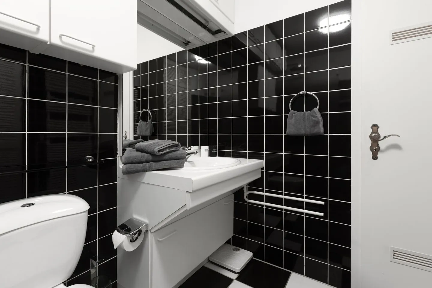 Das Badezimmer verfügt über eine moderne Regendusche, ein WC und ein Waschbecken. Pflegeprodukte werden gestellt, sodass Sie sich sofort wohlfühlen können.