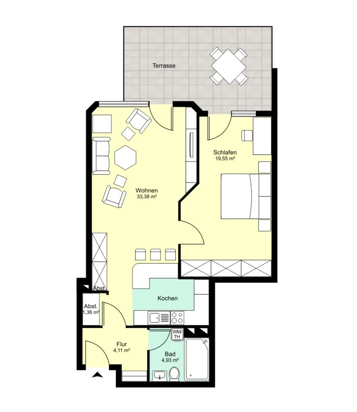 Die Wohnung ist modern und liebevoll eingerichtet und eignet sich perfekt für Paare oder kleine Familien. Der Wohnbereich ist lichtdurchflutet und lädt mit bequemen Sitzmöbeln und einem Fernseher zum Entspannen ein. Eine offene, gut ausgestattete Küche mit Geschirrspüler, Herd und Backofen sorgt für Komfort während des Aufenthalts.