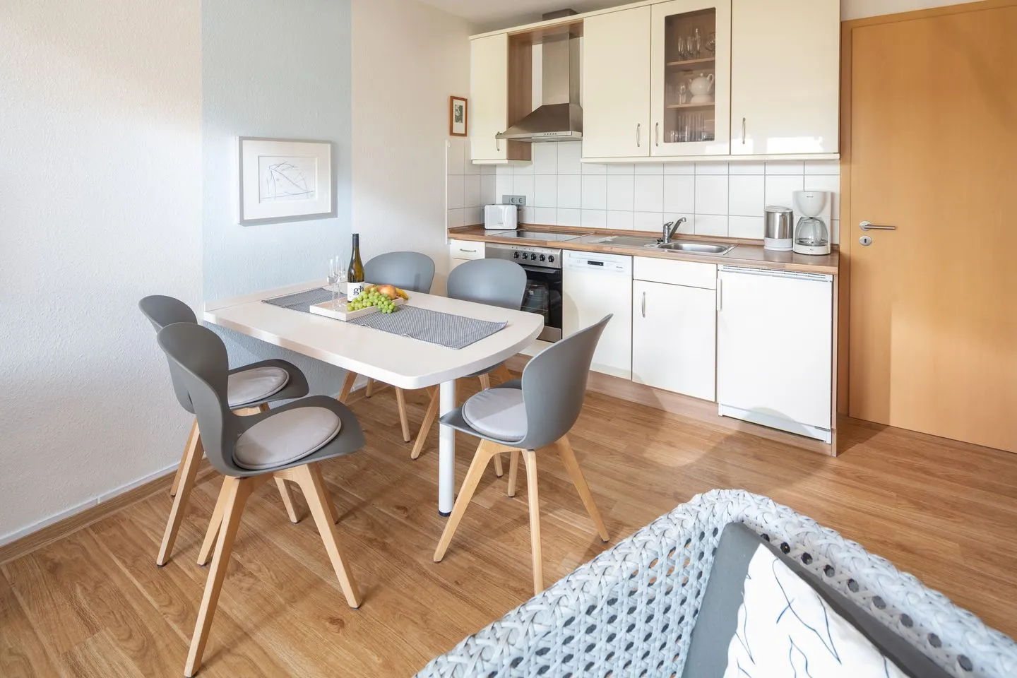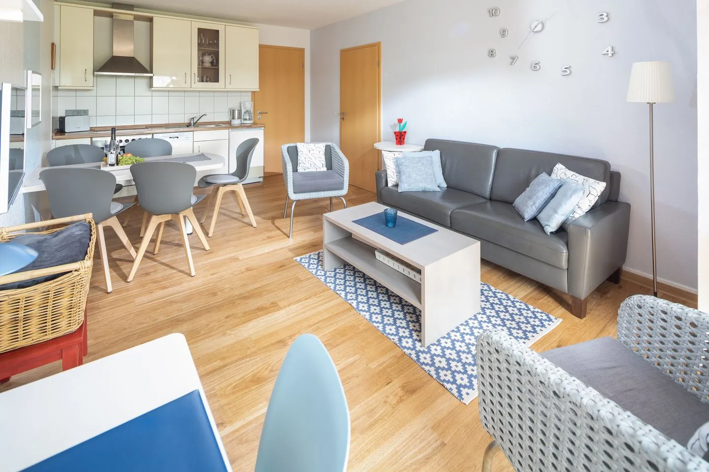 Unsere Ferienwohnung bietet Platz für bis zu vier Personen und ist somit ideal für Familien, Paare oder Freunde, die gemeinsam Zeit verbringen möchten. Die Wohnung ist modern und geschmackvoll eingerichtet, sodass Sie sich sofort wie zu Hause fühlen werden. Gemütliche Schlafmöglichkeiten laden zu erholsamen Nächten ein: 2 Schlafzimmer ( 1 x mit Doppelzimmer, 1 x zwei Einzelbetten)