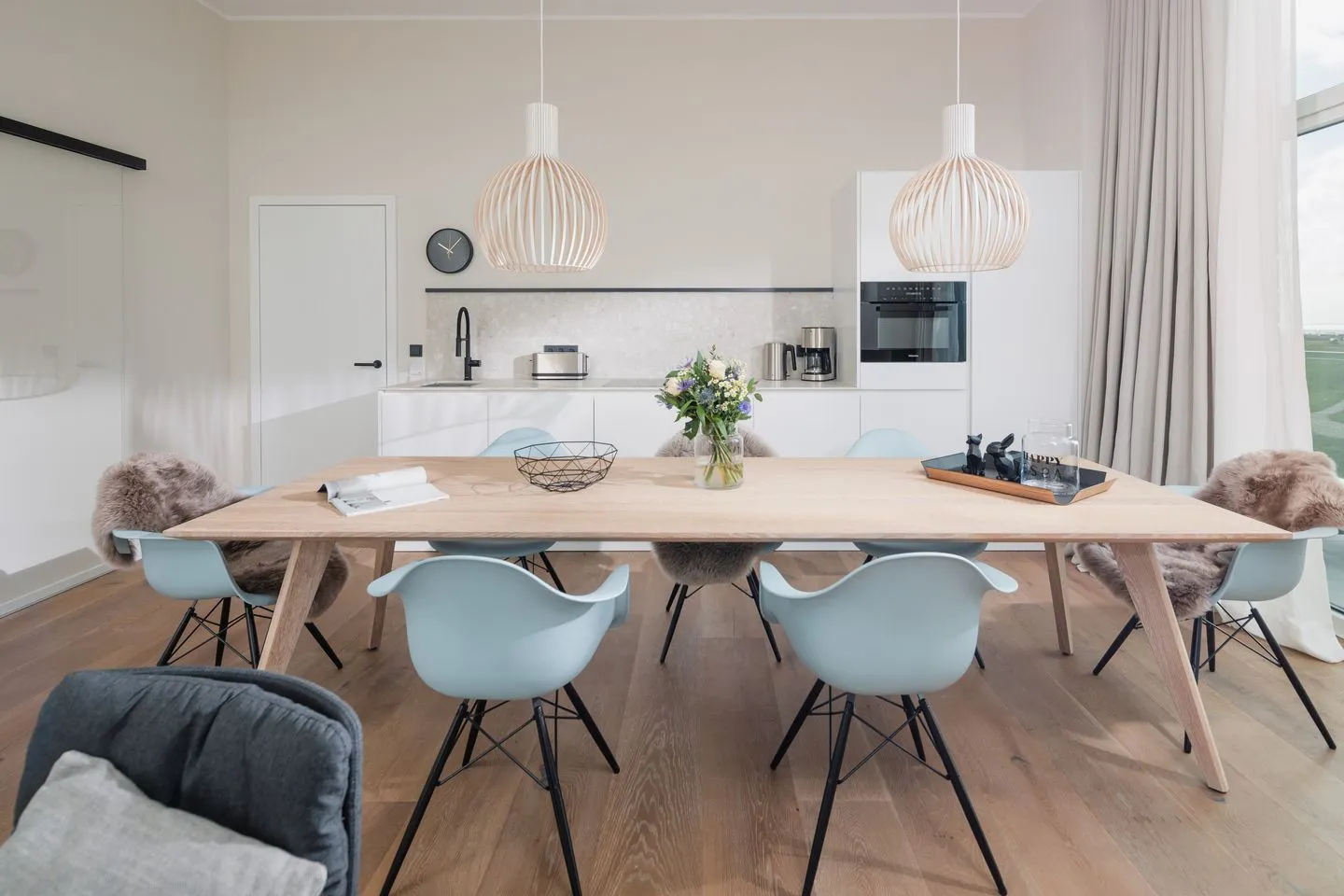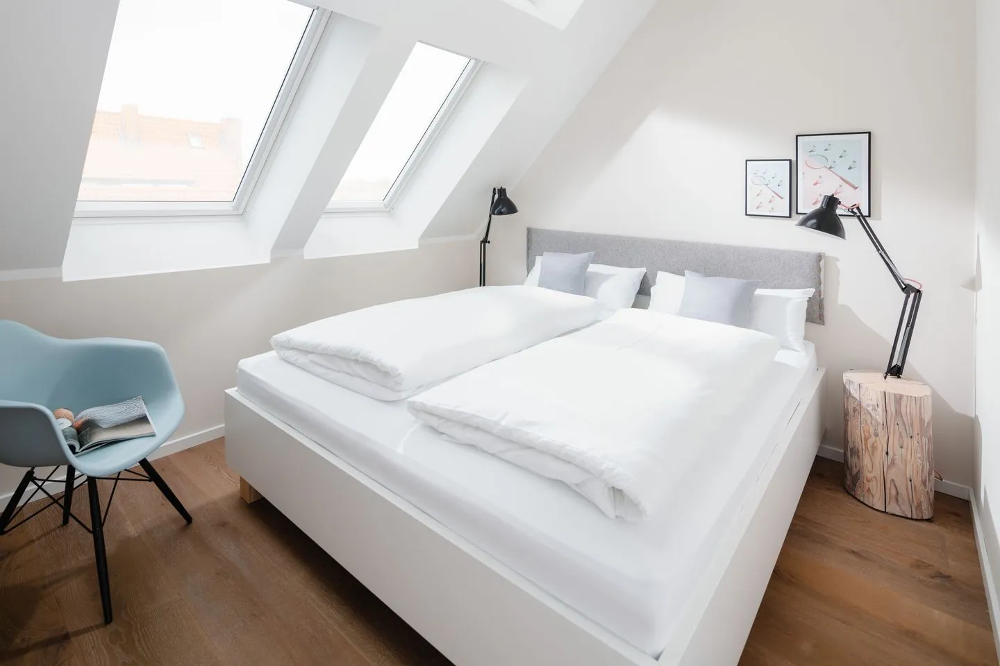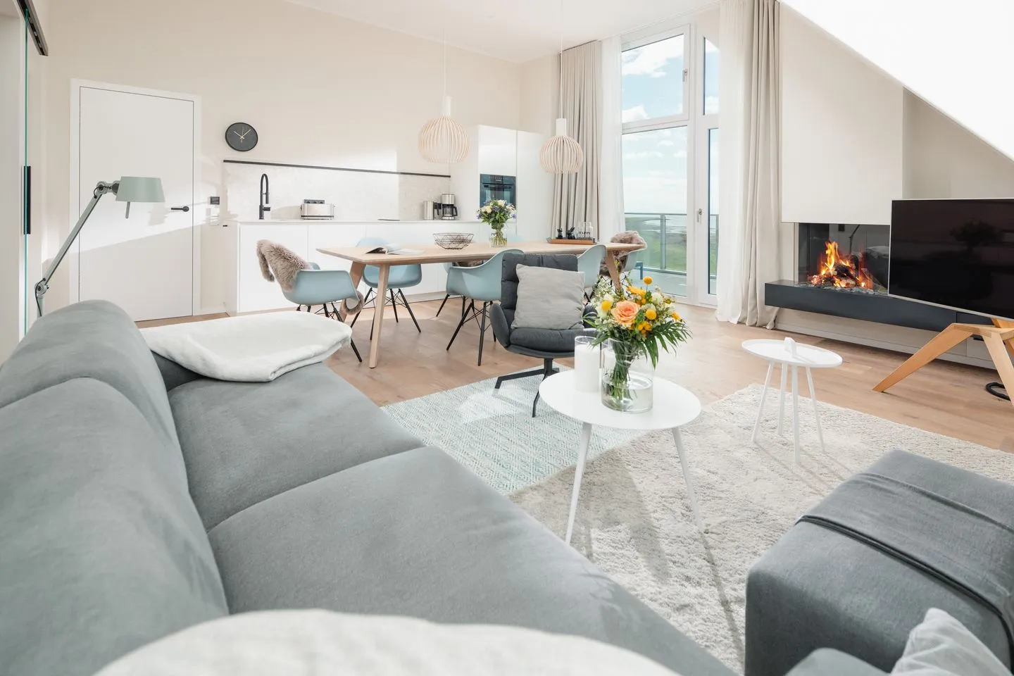 Die knapp 100 qm große Wohnung verfügt über zwei geräumige Schlafzimmer mit Doppelbetten und über zwei Badezimmer. Eines davon ist äußerst großzügig und lädt in Kombination mit einer Infrarot-Sauna zu erholsamen Wellnessstunden ein. In der offenen Wohnküche mit hochwertigsten, maßgefertigten Einrichtungen, empfängt Sie eine große Tafel für gesellige Stunden mit der Familie und Freunden.