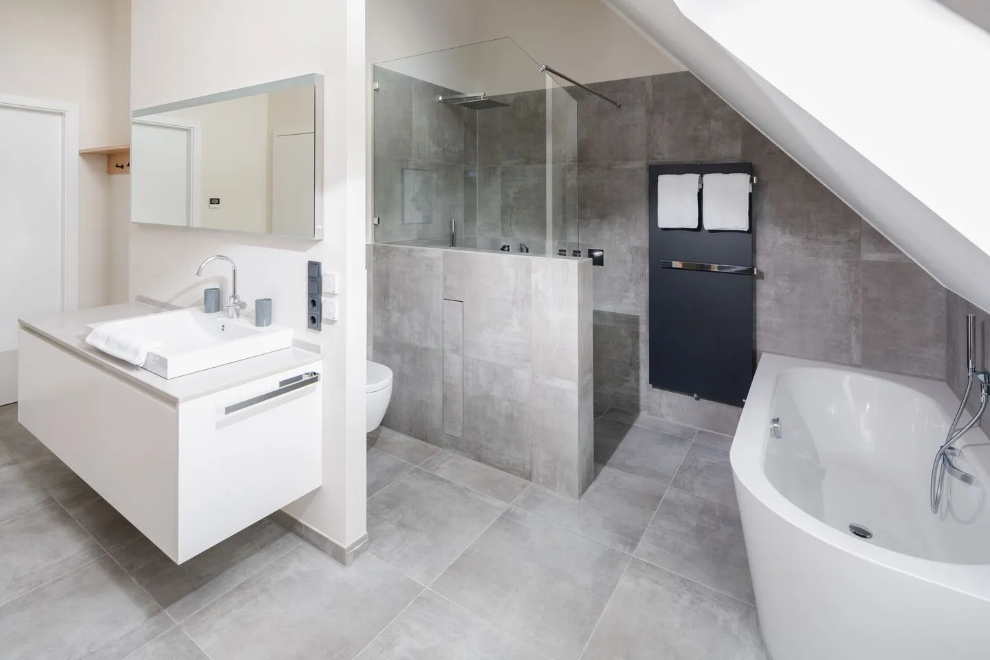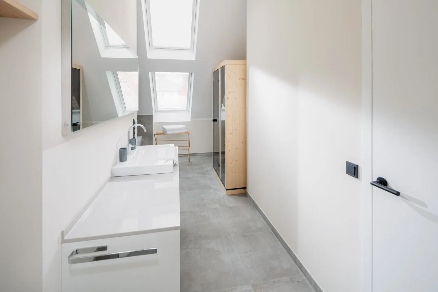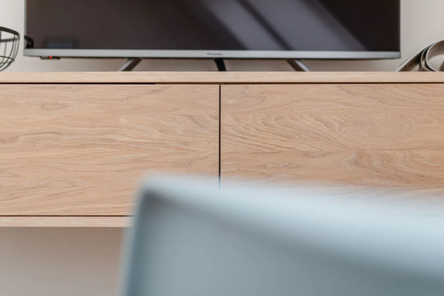 Die knapp 100 qm große Wohnung verfügt über zwei geräumige Schlafzimmer mit Doppelbetten und über zwei Badezimmer. Eines davon ist äußerst großzügig und lädt in Kombination mit einer Infrarot-Sauna zu erholsamen Wellnessstunden ein. In der offenen Wohnküche mit hochwertigsten, maßgefertigten Einrichtungen, empfängt Sie eine große Tafel für gesellige Stunden mit der Familie und Freunden.
