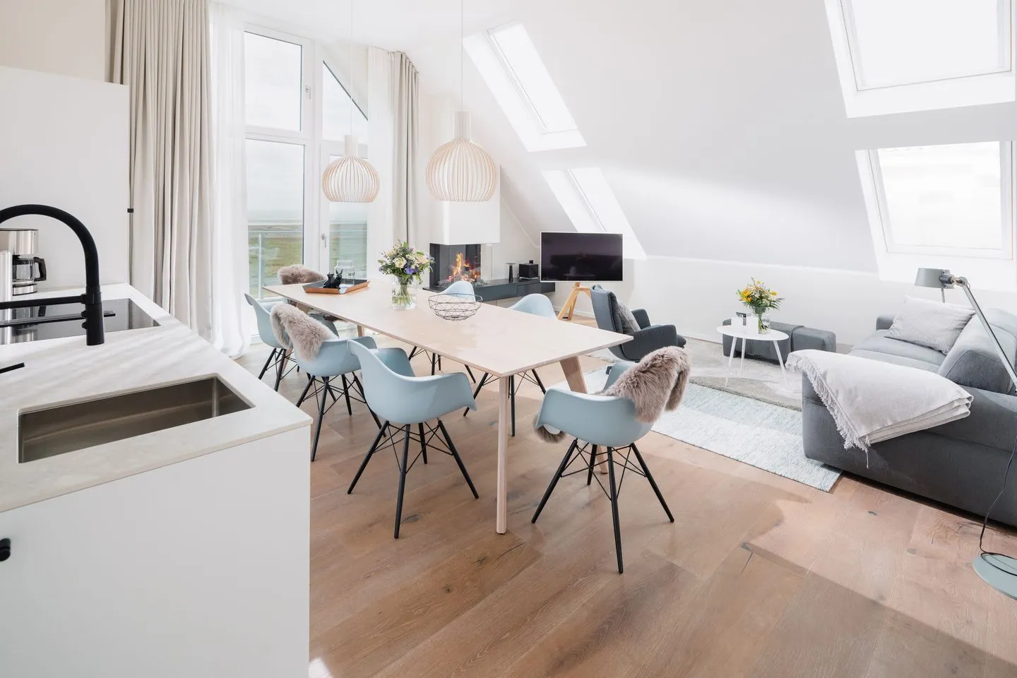 Ein schickes Penthouse begrüßt Sie in Toplage, nah zum Ortskern und noch näher zu den Salzwiesen und dem Wattenmeer. Helle, luftige Räume mit Panoramafenstern geben einen atemberaubenden Blick über die Wiesen und das Meer bis hin zum Hafen frei. Auf der Panorama-Terrasse in Richtung Süden werden sie viele Stunden diesen einzigartigen Blick genießen.