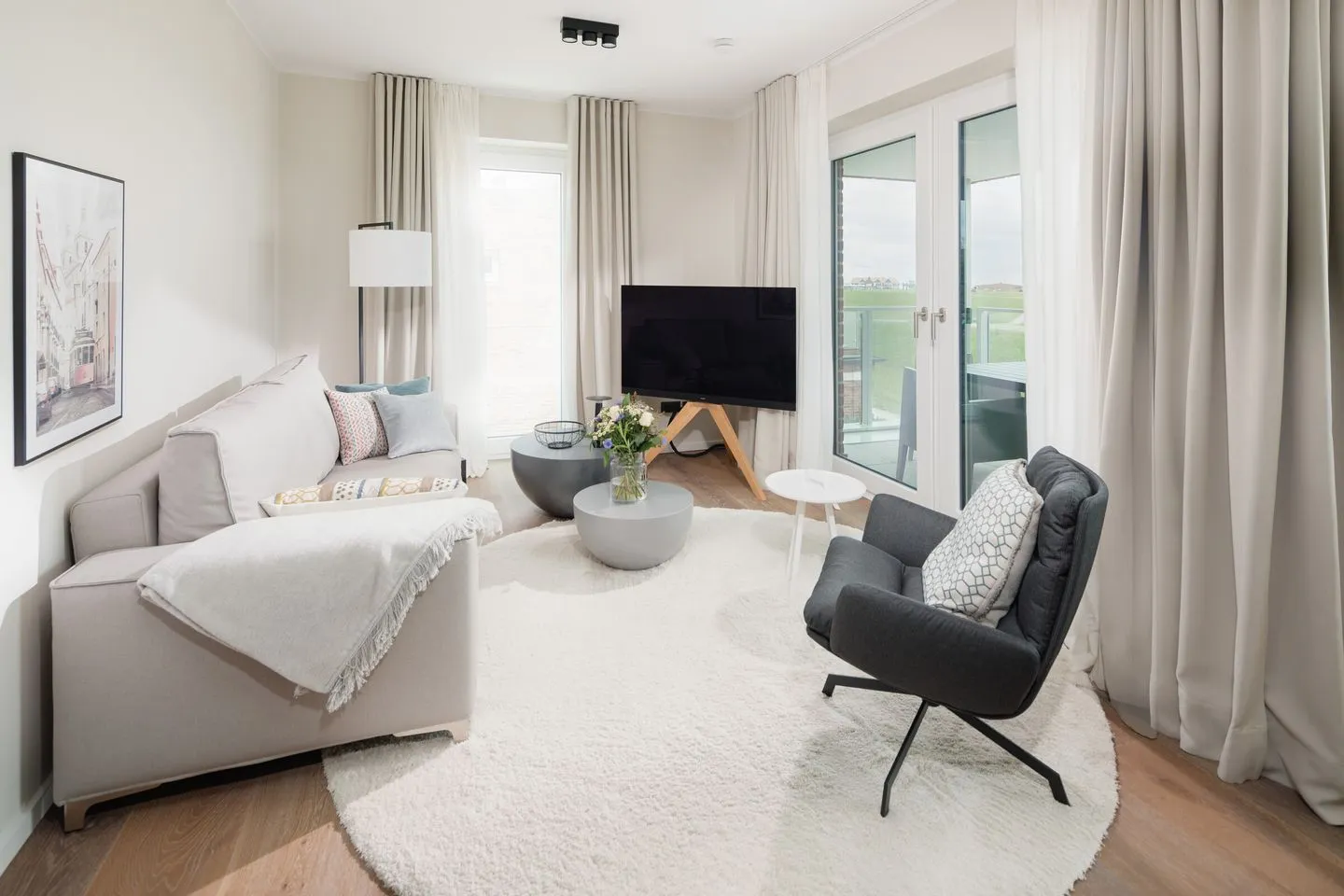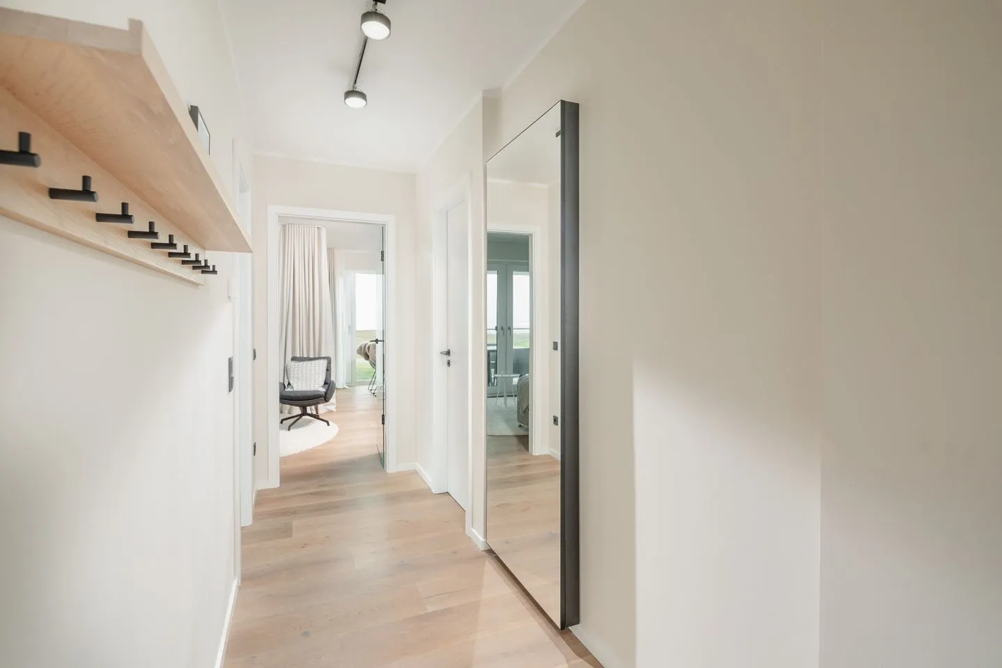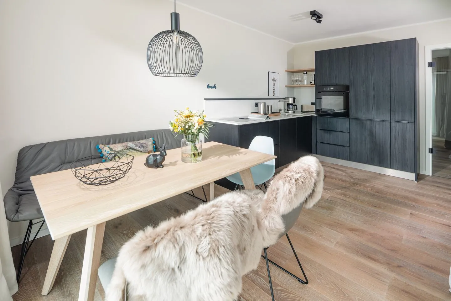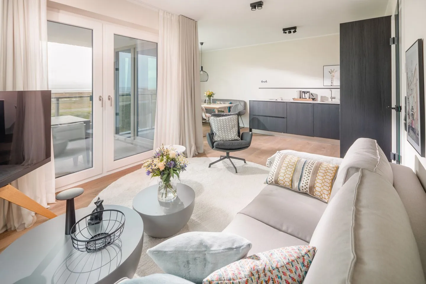 Beim Betreten dieser modernen, 60 qm Zweizimmerwohnung erwartet Sie beim Eintreten ein spektakulärer Blick auf und über den Deich, die malerischen Salzwiesen und das Meer. Dieses Feriendomizil ist die perfekte Wohnung zu zweit. Sie punktet mit ihrer hochwertigen Gestaltung und Ausstattung. Die gesamte Wohnung ist mit Massivholzdielen ausgestattet und sorgt so, in Verbindung mit der Möblierung, für ein äußerst gemütliches Ambiente. Große, bodentiefe Fenster fluten diese Wohnung mit fantastischem Licht, ein Südbalkon bietet Panorama und Erholung pur.